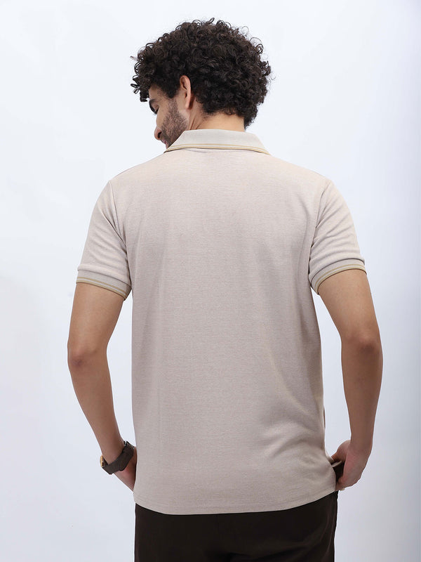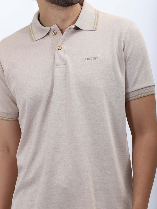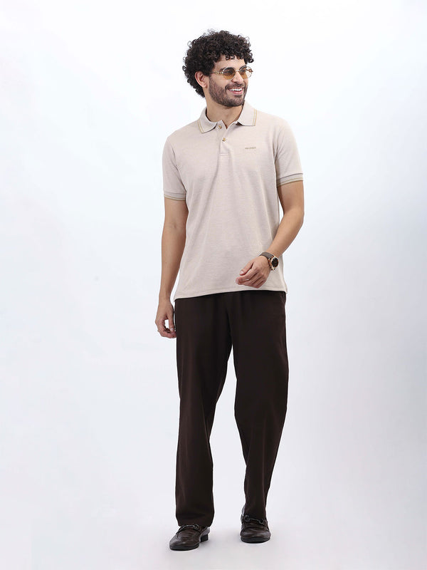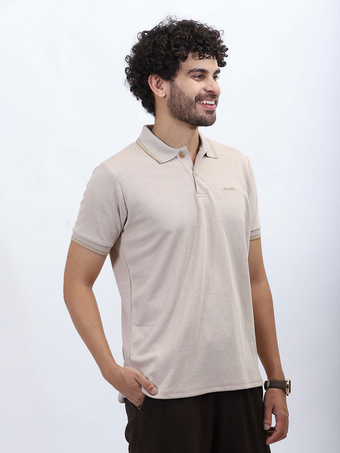 Feature: Soft piqué polo in desert beige paired with rugged olive cargo pants, combining comfort, utility, and timeless casual style.