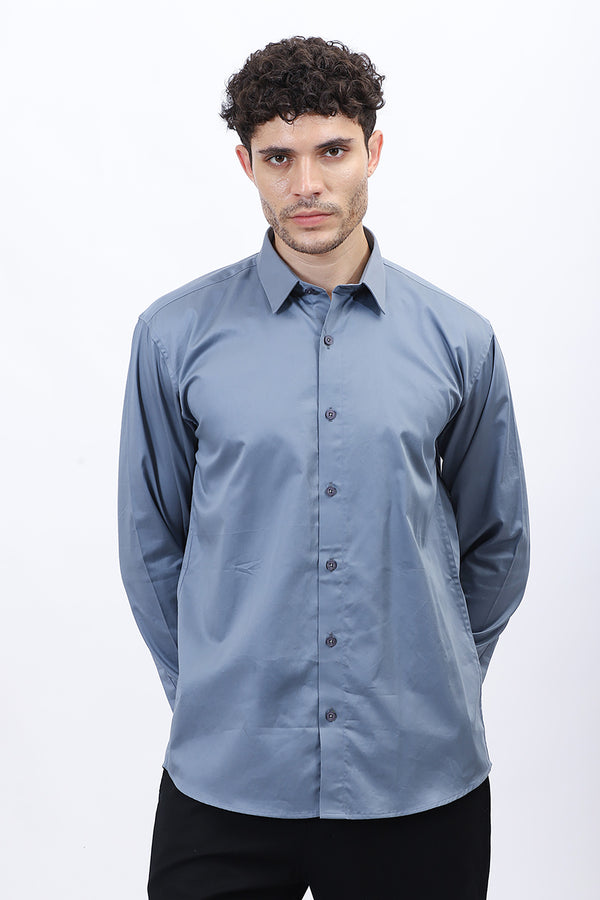 Add a refined touch to your wardrobe with this silver blue shirt made from premium cotton satin fabric. Known for its smooth finish and subtle sheen, cotton satin offers both comfort and a polished look. This full-sleeve shirt features a structured spread collar, neat button cuffs, and a sleek button-down front. Perfect for office meetings, dinner parties, or any occasion that calls for smart elegance.