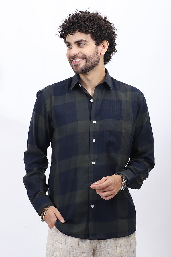 Classic checks meet all-day comfort in this navy cotton shirt designed for effortless versatility. Featuring a timeless regular collar, patch pocket, and softener-washed fabric, it's perfect for transitioning from work hours to off-duty outings. The structured fit and white button detailing add a clean, crisp finish to the traditional check pattern.