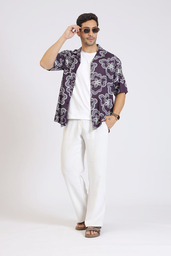 Add a fresh burst of color to your wardrobe with our Purple Flower Print Shirt. Tailored in a relaxed regular fit with half sleeves for all-day comfort, this shirt is made from ultra-soft, breathable 110 GSM rayon. Featuring a vibrant purple flower print, this stylish piece is brought to you by Indiana Puntos, known for quality and craftsmanship. Perfect for brunches, casual hangouts, or holiday looks, it’s all about effortless style.