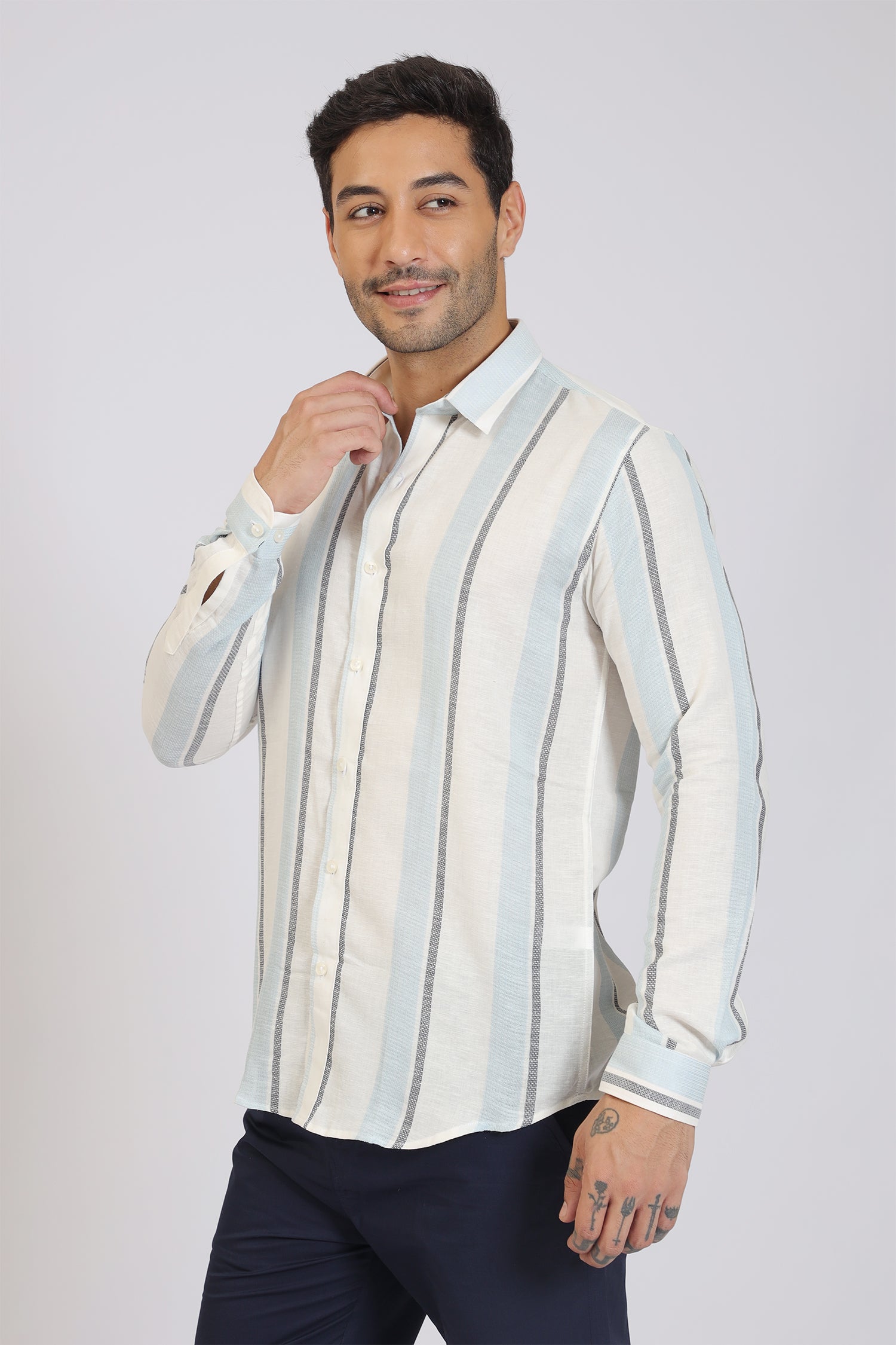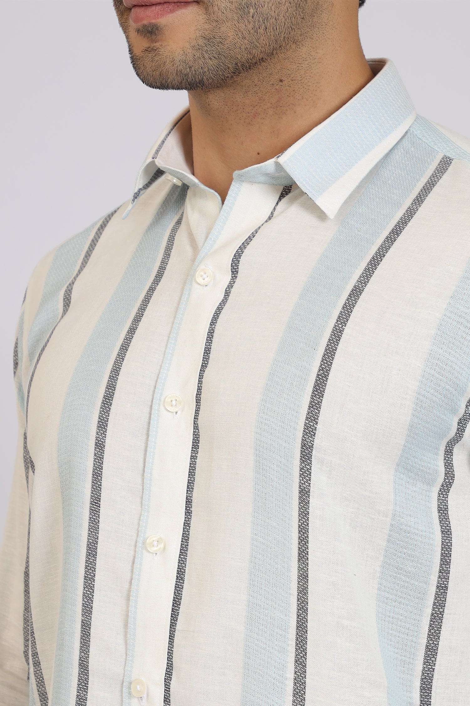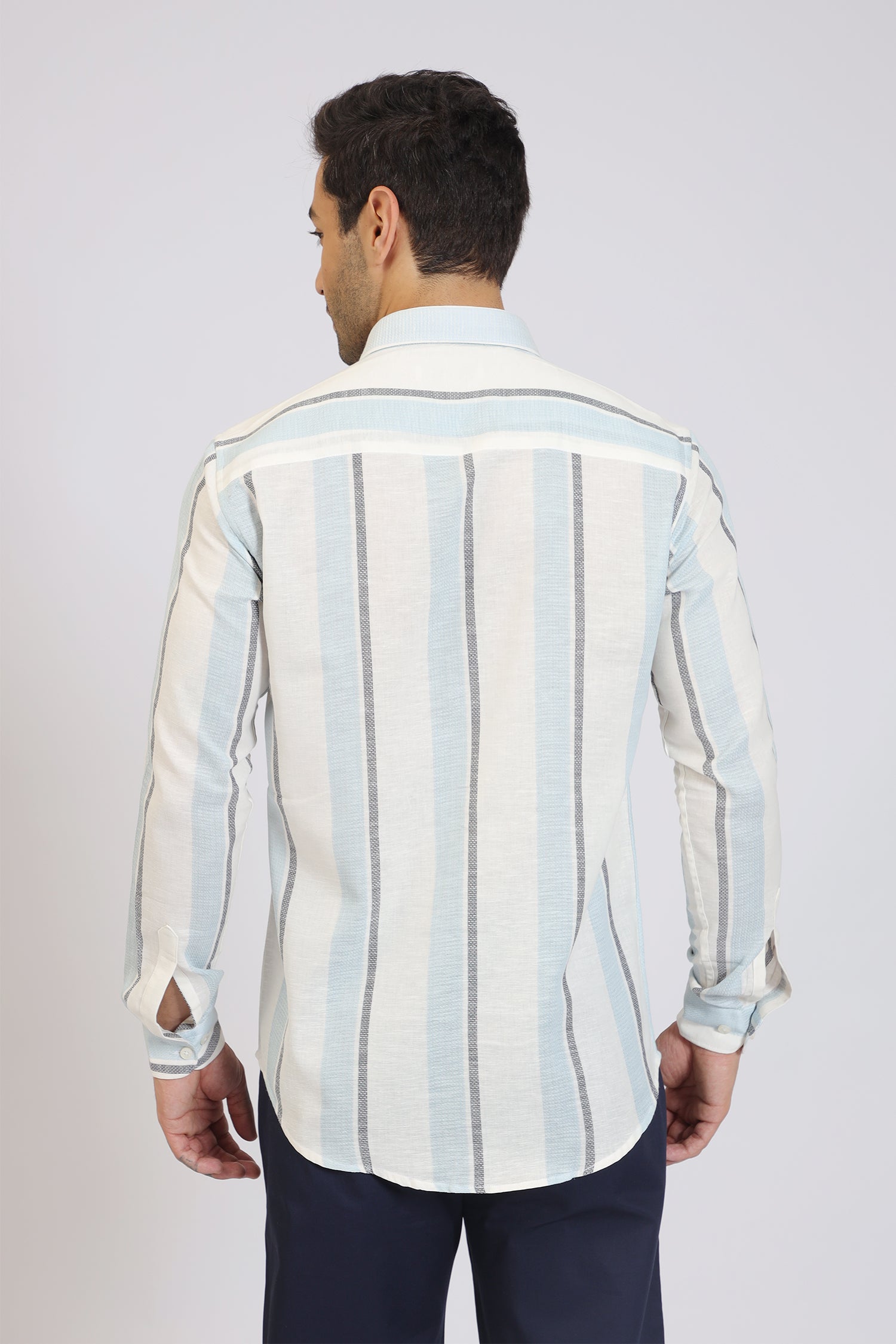 Elevate your wardrobe with our Sky Striped Cotton Linen Shirt, crafted for a comfortable regular fit with full sleeves. Made from soft and breathable 130 GSM cotton linen fabric, this shirt combines lightweight comfort with subtle style. Designed in-house, it features classic stripes in a refreshing sky blue shade—perfect for both casual and semi-formal occasions.