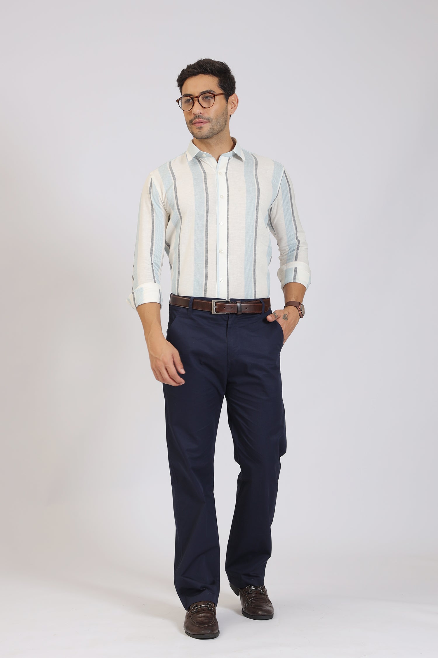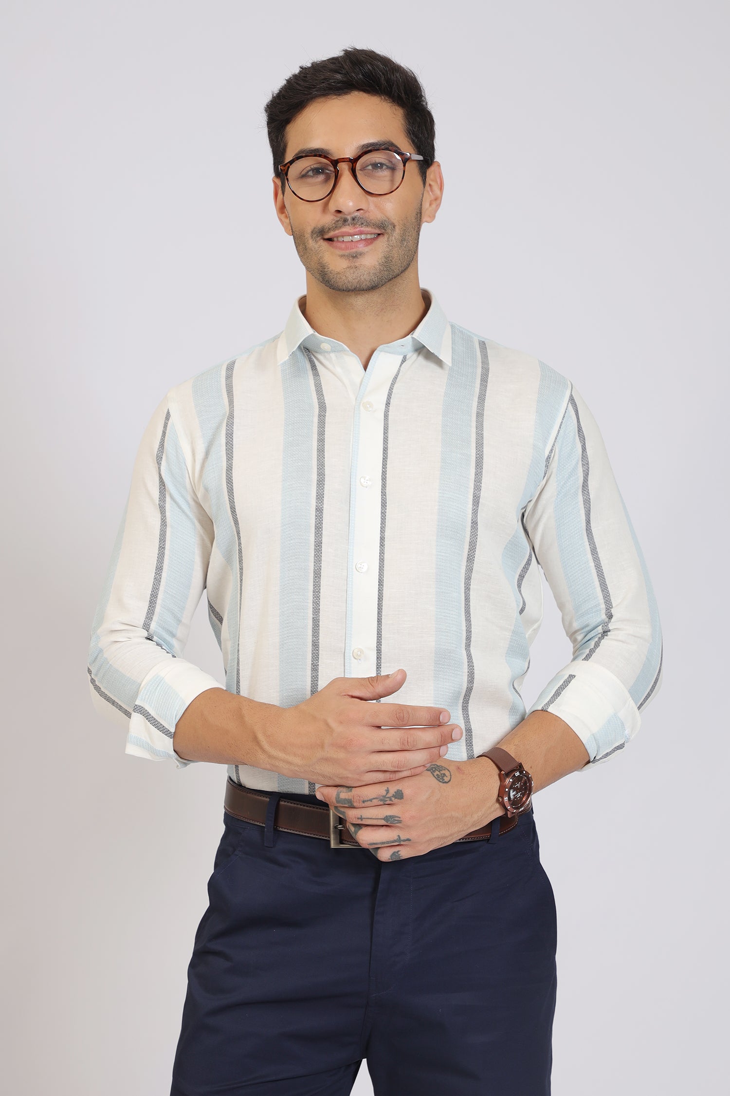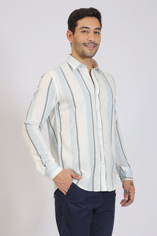 Elevate your wardrobe with our Sky Striped Cotton Linen Shirt, crafted for a comfortable regular fit with full sleeves. Made from soft and breathable 130 GSM cotton linen fabric, this shirt combines lightweight comfort with subtle style. Designed in-house, it features classic stripes in a refreshing sky blue shade—perfect for both casual and semi-formal occasions.