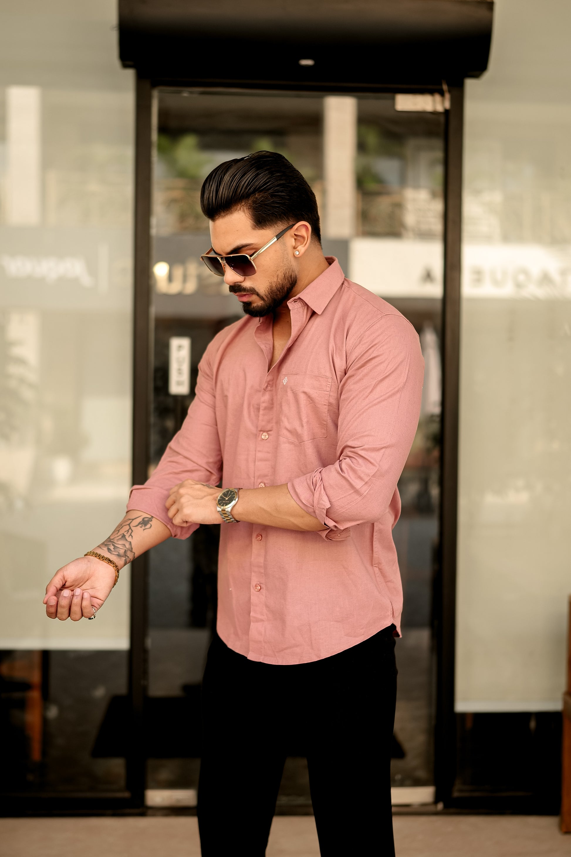 Feature: Soft dusty rose casual shirt with a relaxed fit, made from breathable fabric for effortless style and everyday comfort.