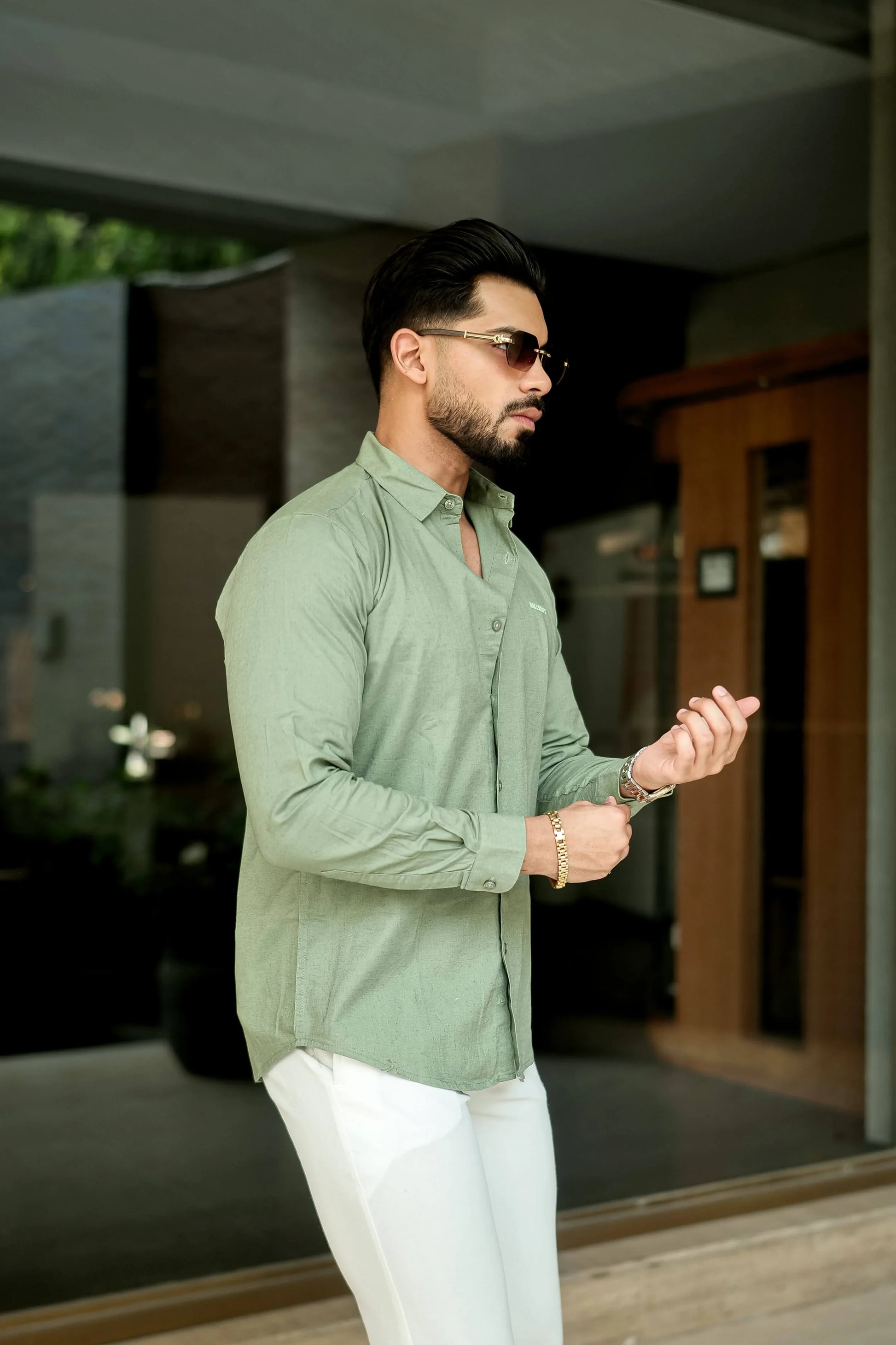 Sage Smart Casual Full-Sleeve Cotton Shirt