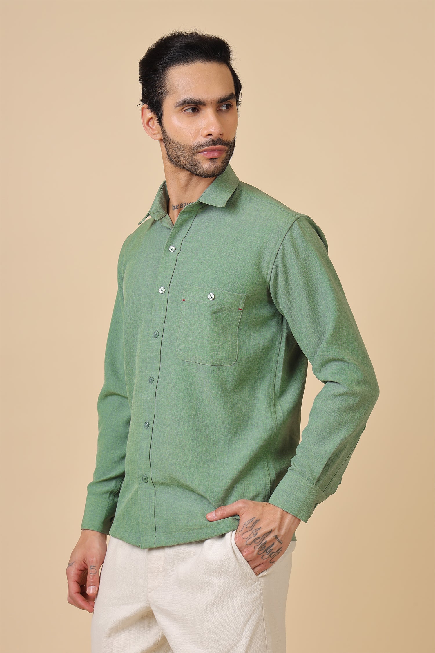 Minimal Textured Green Full-Sleeve Shirt